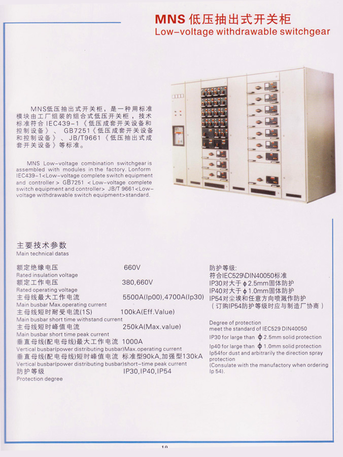 MNS低壓抽出式開關(guān)柜