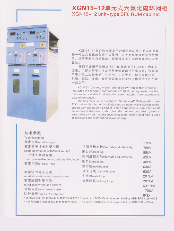 XGN15-12單元式六氟化硫環(huán)網(wǎng)柜